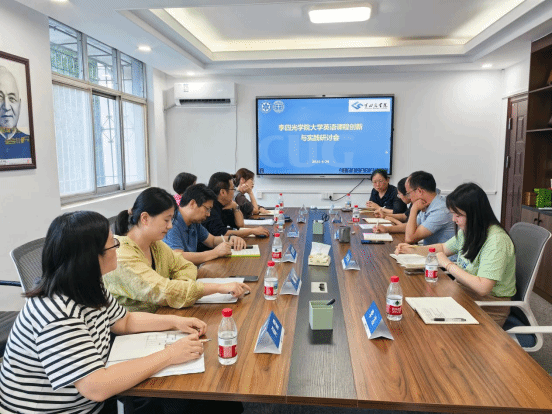和李四光直播性爱在行政楼215联合召开“大学英语课程创新与实践研讨会”。李四光直播性爱常务副院长赵得爱、办公室李洁、马丽敏,辅导员李若萌,直播性爱