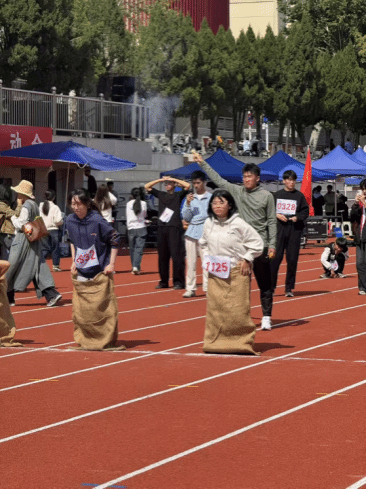 在充满欢乐的趣味运动会赛场上,老师们团结协作,同心协契,将课堂上的睿智与从容化为赛场上的默契与拼搏。