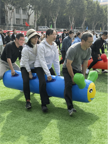 跨坐在“欢乐毛毛虫”上,老师们口号嘹亮,动作齐整,全力冲向终点,斩获全校第三名的佳绩,欢呼声是对他们团队精神的最佳褒奖。