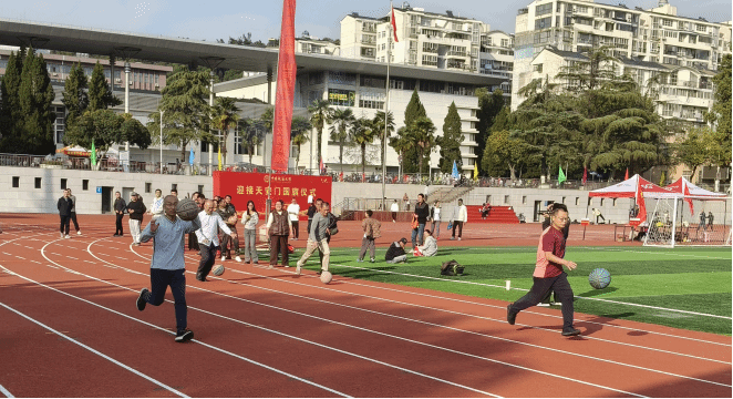 足球定点射门时,他们气定神闲,脚法精准,足球划出的弧线赢得了场边的阵阵喝彩。