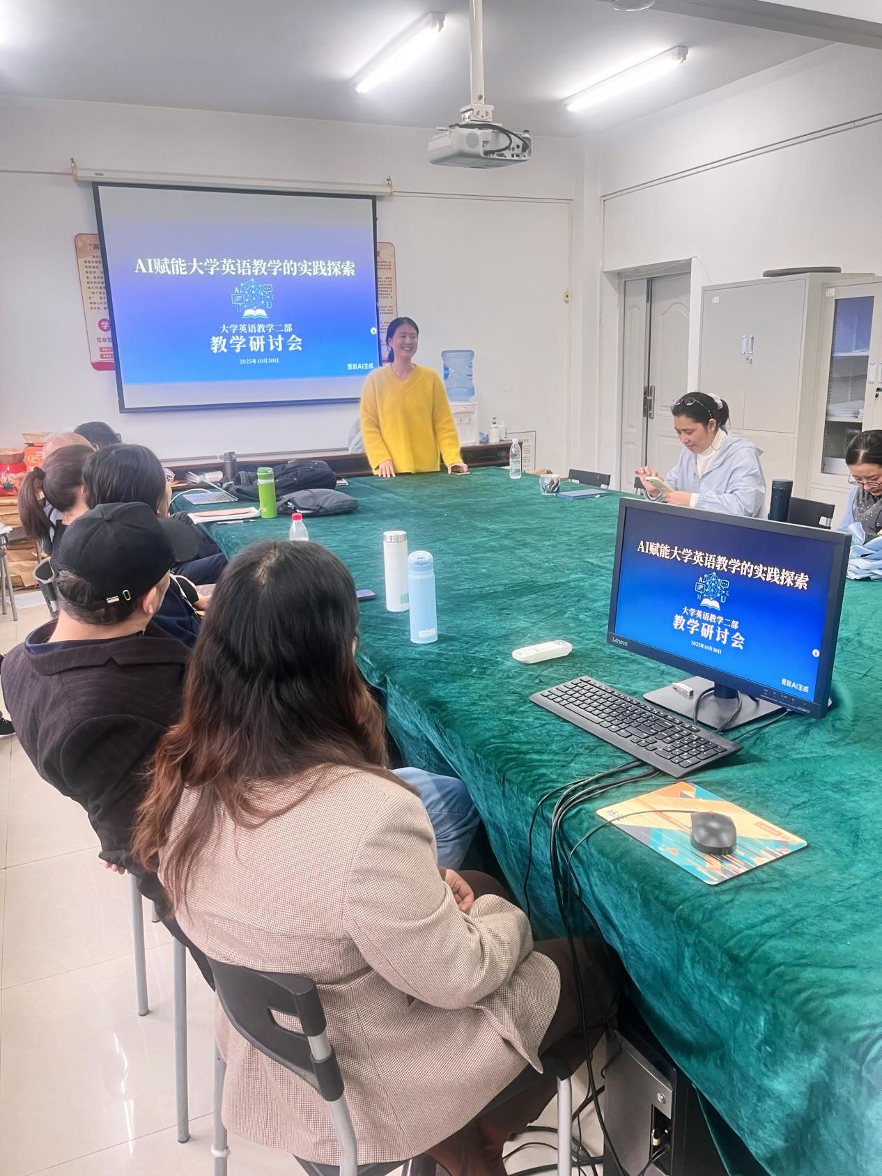 (通讯员:李培、陶惟)2025年10月30日,大学英语二部在北一楼334召开主题为“AI赋能大学英语教学的实践探索”的教学研讨会。本次会议由陶惟老师主持,现场气氛热烈,与会教师专注投入。